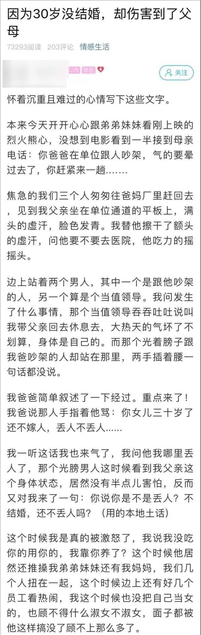 $ S' u: T7 x5 w7 x6 U最近,网上一篇题为《因为30岁没结婚,却伤害到了父母》的帖子,引发了不少网友的关注。7 g6 o( l" N% i) O% N; d' T1 y