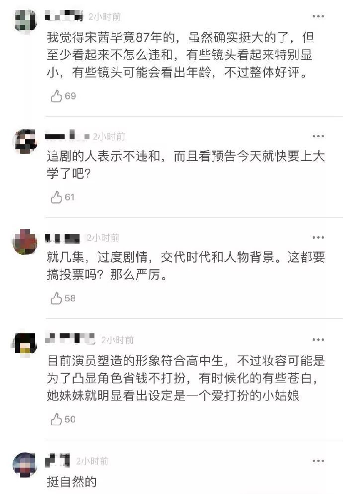 网络上,有人对“宋茜以30+的年纪饰演高中生”这一话题展开讨论,讨论是否有些违和感。