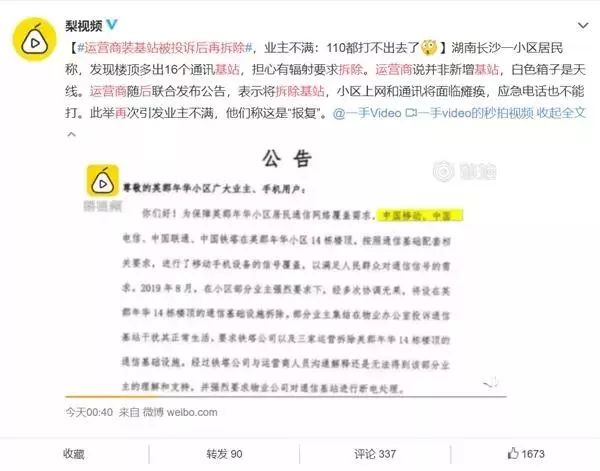 近年来,小区业主因担忧有辐射而阻扰通讯基站建设的新闻层出不穷,这不,继成都、福建、山东菏泽等小区发生类似情况被三大运营商集体断网之后,长沙一小区也难以幸免。6 ]7 S! ^" [: M5 e