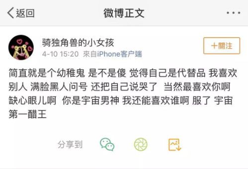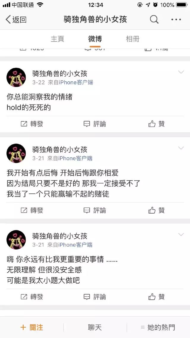 再一方面,网友扒出这个微博名之前叫“骑独角兽的小女孩”。