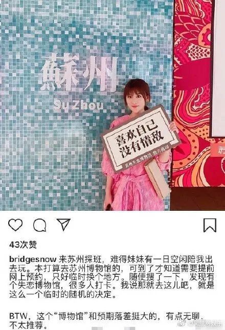 圈内大神你身边的娱乐专家! 最近,有人在失恋博物馆偶遇乔欣,表示本人肤白貌美大长腿,人还很好。/ n3 B! V, f; X