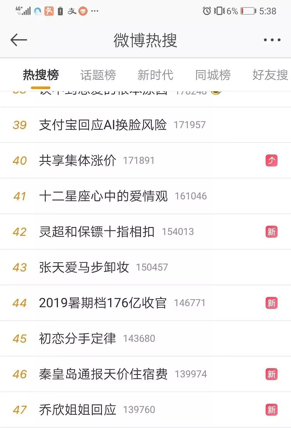 而且5点38分的时候,乔欣姐姐澄清的热搜还排在第47位,