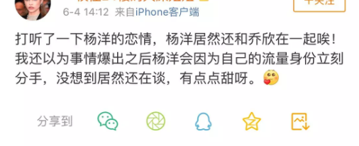 所以现在乔欣跟杨洋已经分手了?前段时间才被爆出的甜宠恋情,就这么掰了吗?- v8 V* j ]( ?3 F4 V