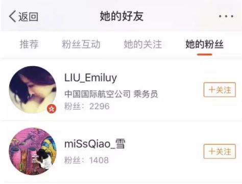 首先是这个小号被乔欣的好友和乔欣的姐姐关注了。" z7 i1 M0 S6 M. w# v: |