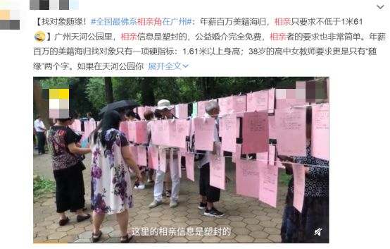 * r% f% T! M$ v* t x9 Z' r1 R. L虽然结婚率低已经成为了大势所趋,但是许多年轻人依旧承受着被家人频频催婚的巨大压力。有的家长为了孩子的婚姻大事,不惜亲自上阵为子女征婚,于是各地区都涌现出了许多“相亲角”,大妈大爷们在这里各显神通,力求让子女早日脱单。
