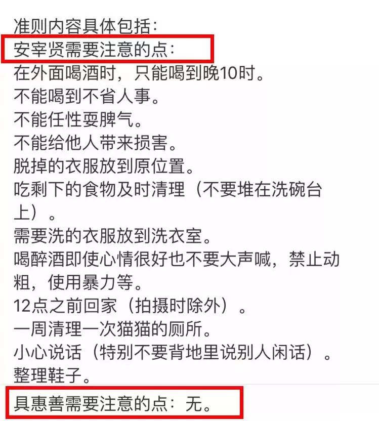 6 C# u3 P% d# m/ g1 T条约是新一轮拉锯战的物料。10条里,有5条都跟家务有关。10条之外,具惠善还有一条控诉,控诉安宰贤带走了猫咪,“但他从来没有喂过它们,也没有清理过大便。”* h" e" P7 e8 K- ^7 ~5 X