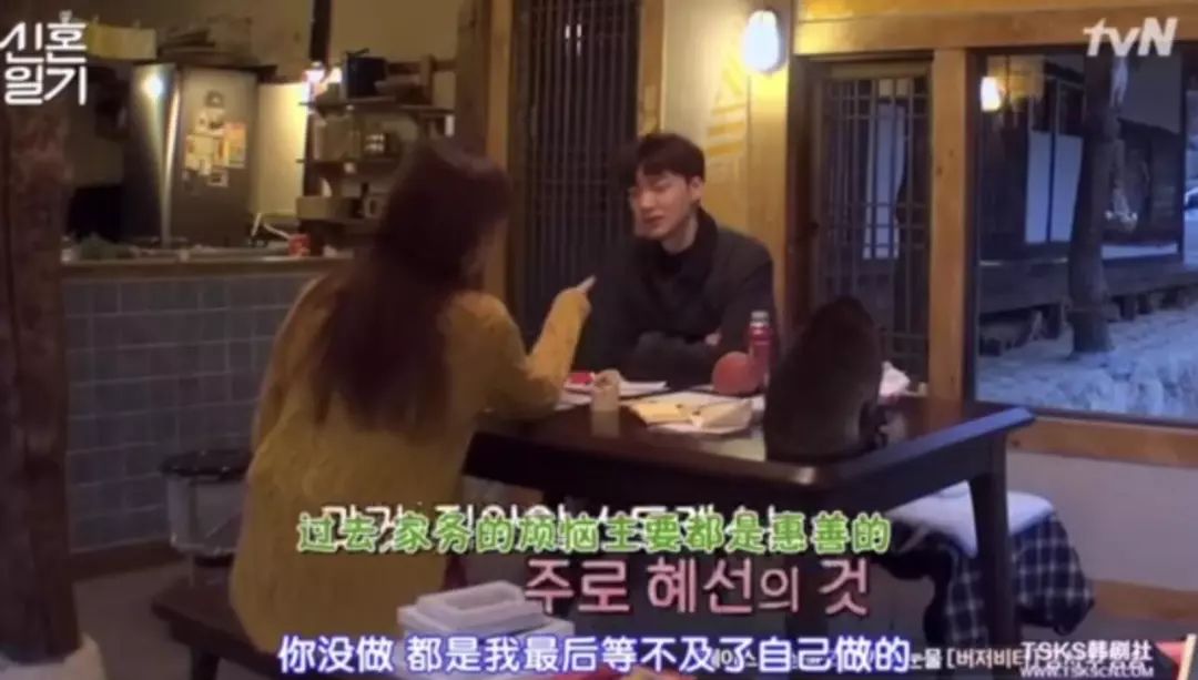 , ^( d, H1 _0 N8 f跟学霸具惠善比,安宰贤着实是个学渣。《新婚日记》里有次对谈,安被具碾压得好惨。