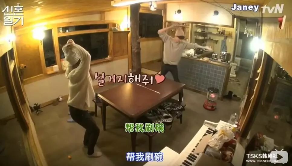 . Z% h5 r5 M. ?) V9 ^. I8 P具惠善输了,输了也不想洗。急中生智来了一招,对安宰贤比心,撒娇说“帮我刷碗。”