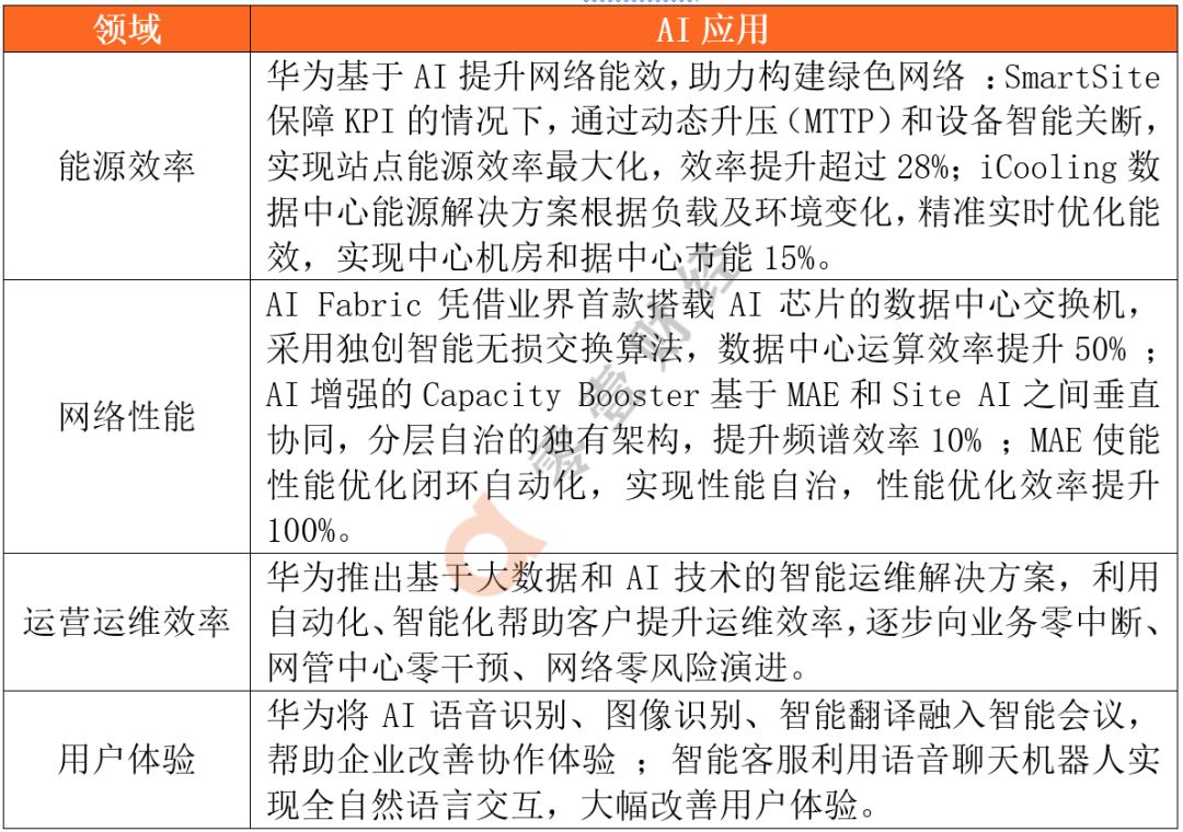 % b. l; e/ Q9 r- l- I/ s表5 华为运营商业务AI应用 8 o- S& y9 P" U0 ~4 g3 |