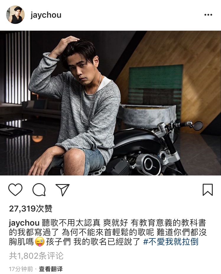 4 ?/ o6 ~0 G; W2 P对于争议声,周杰伦在IG上回应: