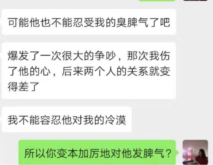 他同意了。 可是,我却越来越觉得他敷衍,我害怕他不爱我,不再对我像从前那样好。 那段时间,我的情绪变得很暴躁。