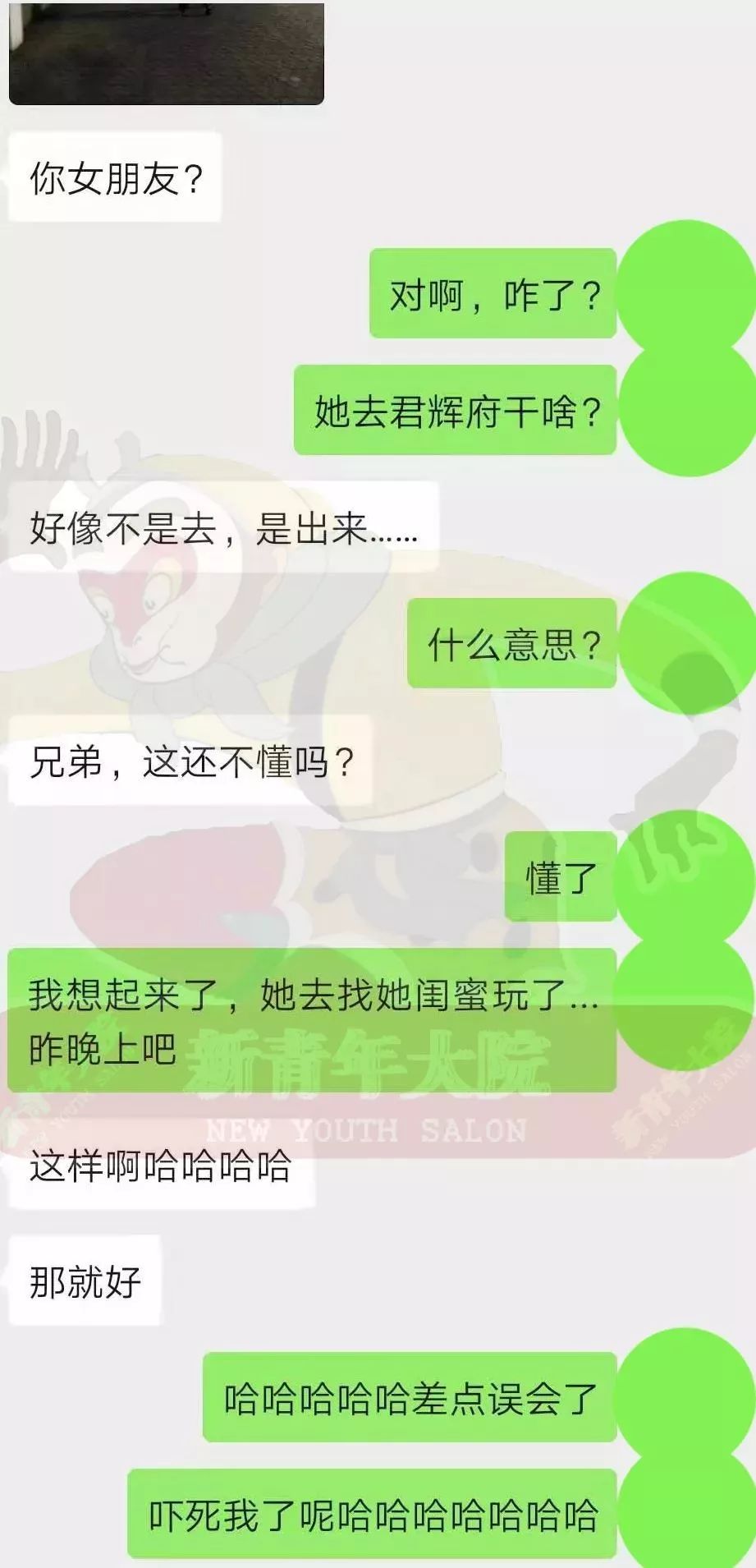 ( |2 x E3 _; i( R, J可能是为了面子,这个男生在兄弟面前,把这件事圆过去了,但越想越不对劲,便去找女朋友求证。