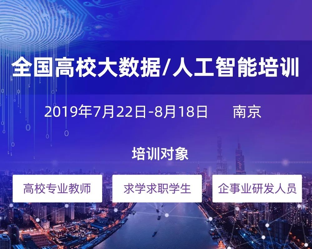 ! p2 r7 z' [# P5 H0 I# T8 X点击下方图片或“阅读原文”了解或报名全国高校大数据/人工智能培训 ↓↓↓