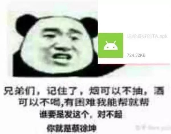 送给最好的TA——这是这个APK文件的名称,确切来说是第一个传播人起的昵称。在网上,大家对于该文件来历的猜测颇多,有整蛊文件、恶意软件、恶作剧工具或是病毒等。" Z! O9 U" d: d- W