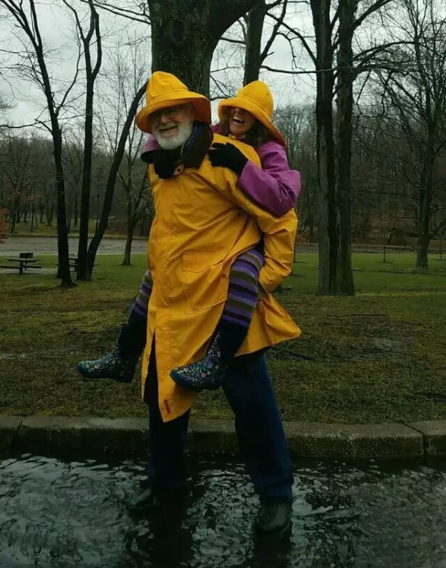 他们俩都喜欢下雨天,谈恋爱时老爷爷经常背着老奶奶在雨里跑,谁知这一背就是几十年。