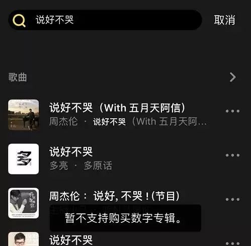 9 ?7 I5 m7 {$ y) O/ K当然免费的肯定还是有缺点,需要单独购买数字专辑的歌曲是买不了也听不了的,比如Taylor Swift 的一系列专辑、周杰伦新歌《说好不哭》...