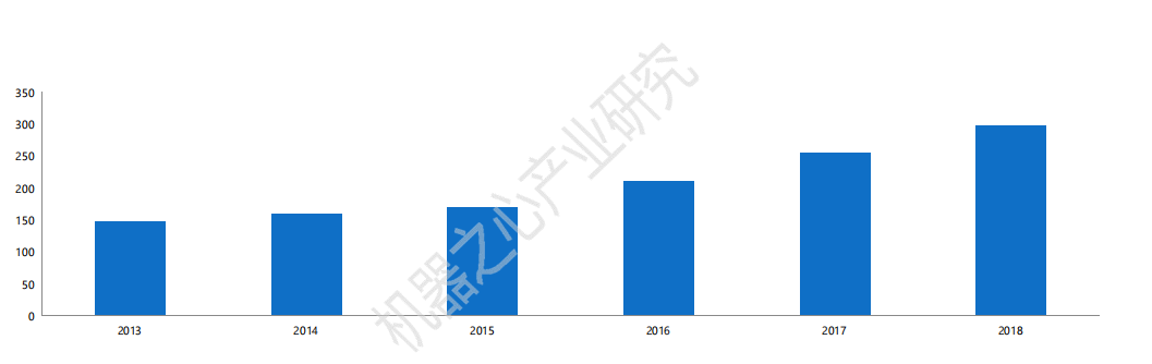 2013-2018全球机器人规模(单位:亿美元) % g5 P4 }7 C J; L# f- v