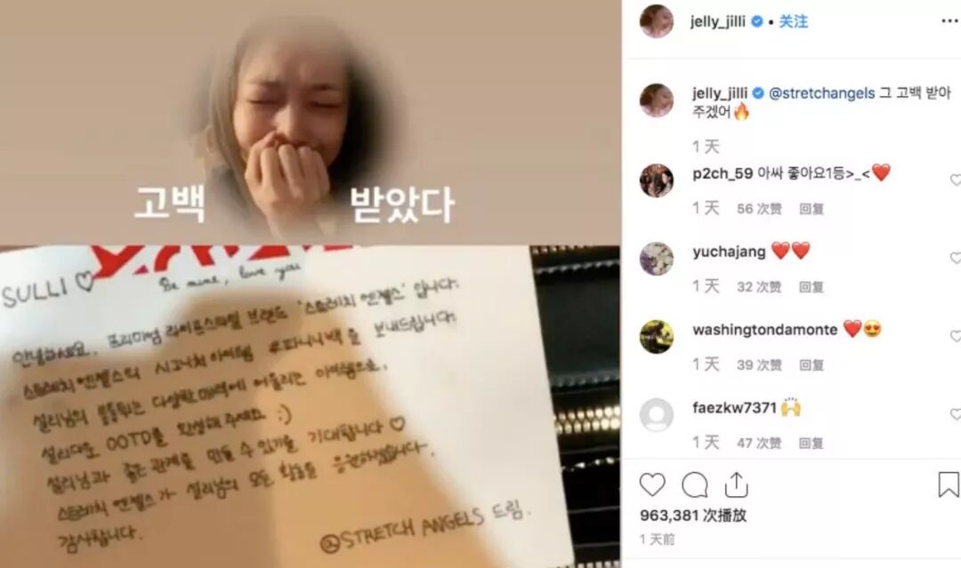 10月12日,雪莉在ins上晒出粉丝送给她的礼物,并配文写道“我接受你的告白”,这也是她最后一条ins。小姐姐走好