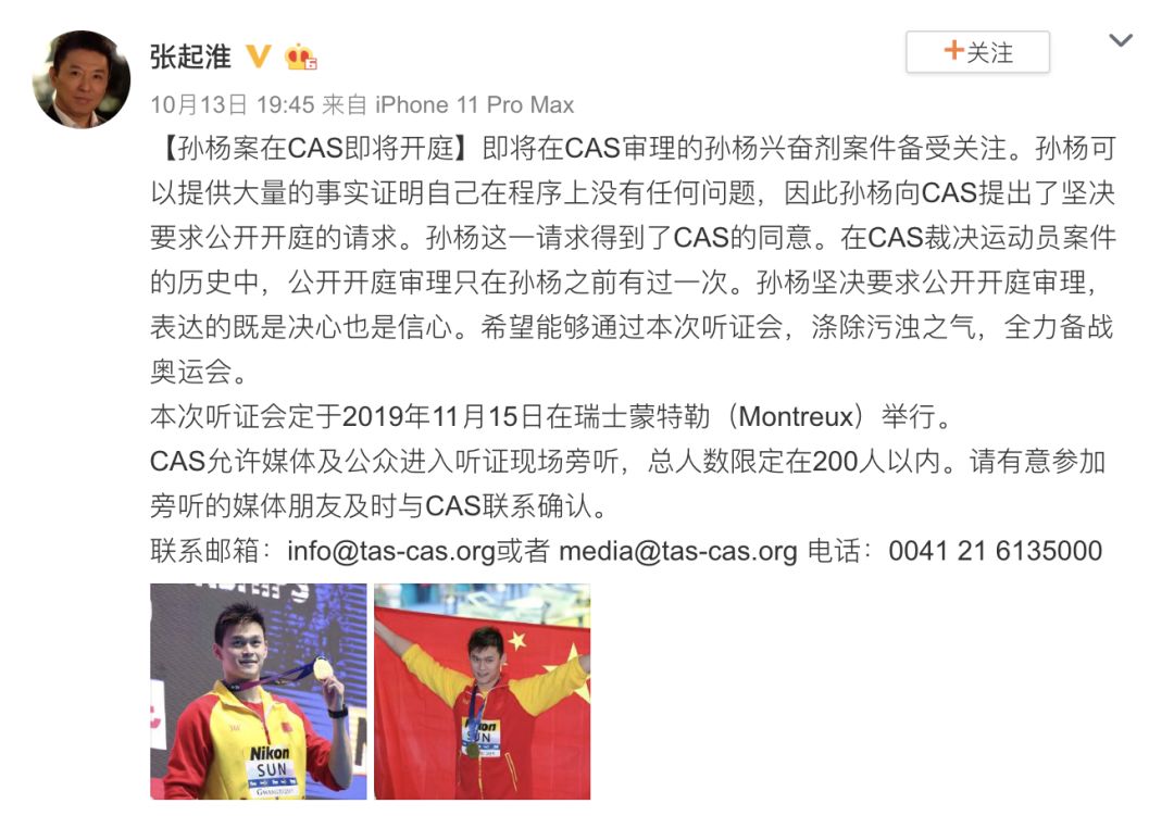 - @7 }6 U- m6 x9 I孙杨听证会确定时间地点