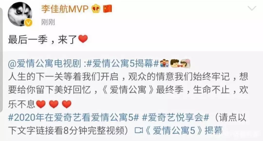 * d& d, E6 E/ m1 O$ `. E" M; a10月15日,《爱情公寓5》官方发布了1个长达8分钟的预告片,并配文称,“人生的下一关等着我们开启,观众的情意我们始终牢记,想要给你留下美好回忆,《爱情公寓》最终季,生命不止,欢乐不息”。* x1 f% k, H" P# k4 N% l$ M