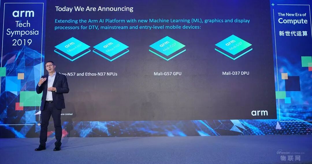 . R) q N! t" V/ x; K1 d在本次研讨会上,Arm还展示了三款IP新品:对应图形处理芯片(GPU)、神经处理芯片(NPU)以及显示处理器(DPU)。