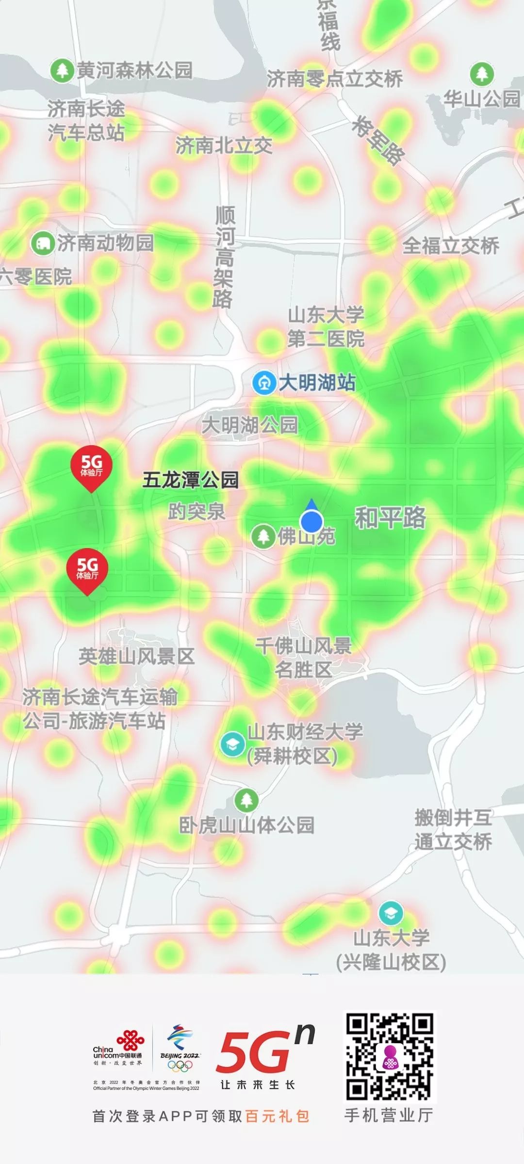 ; y0 K! G. g0 X! i(绿色区域为济南覆盖了5G网络的地区) # d1 T& M& S# Y" ~