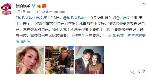 / N, O! M# Y3 E7 ^ w9 u9月还谈了许志安的复工问题。