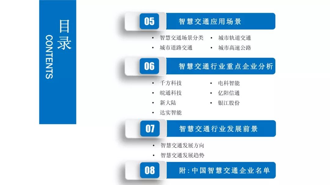 与其相忘江湖,不如点击“蓝字”关注近期,《交通强国建设纲要》的印发在市场上引起强烈的关注。纲要明确指出,大力发展智慧交通,推动大数据、互联网、人工智能、区块链、超级计算等新技术与交通行业深度融合,推进数据资源赋能交通发展,加速交通基础设施网、运输服务网、能源网与信息网络融合发展。- c% V; P! T. j3 P, Z