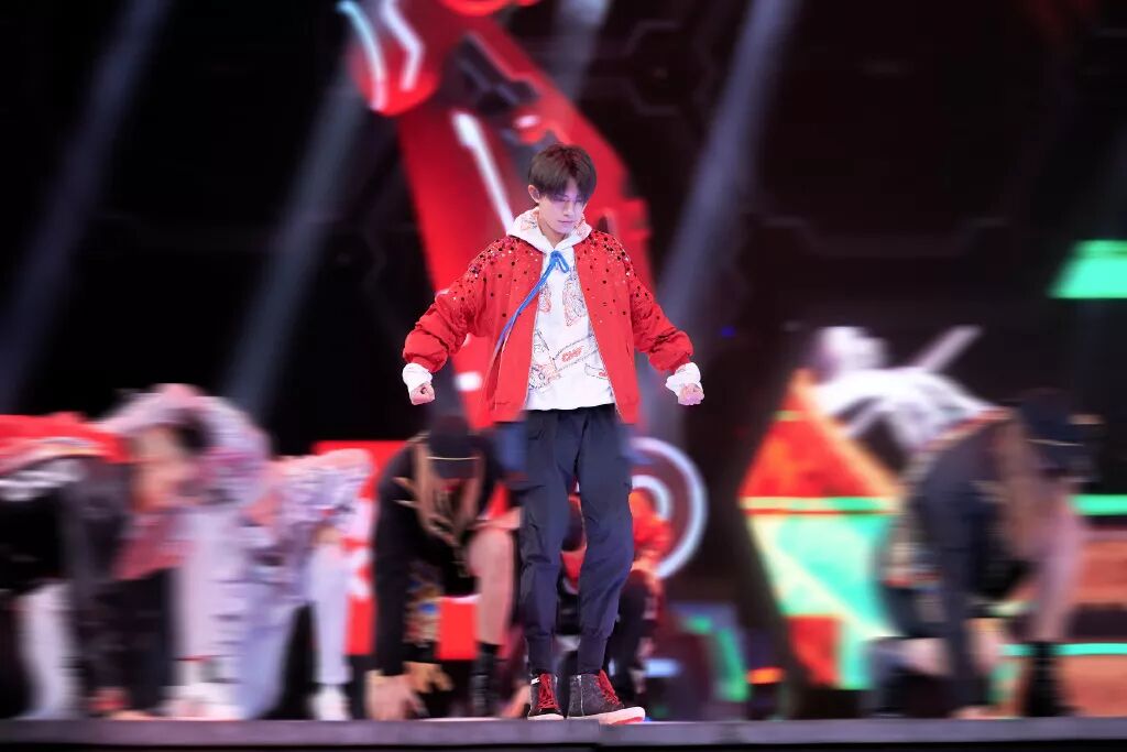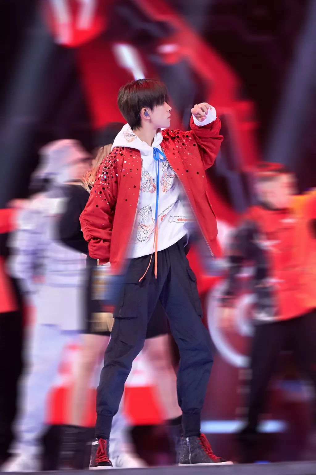 % v, c Y2 }$ X& j/ ~% B: R2 D这次的晚会舞台上,易烊千玺打扮得很清纯,穿着一件百色卫衣搭配红色外套,看起来很有活力。开场的时候千玺还是小卷发,跳街舞的时候刘海已经拉直了,耷拉在眼镜上,很有日系风格,加上表情严肃,瞬间好像回到了“小北”时期。 % T/ ^% v' y1 Z7 l: b$ Y