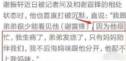 $ |, m* r) h) i# c前几天,看到一则被否认的传闻,很感慨。 先是港媒传出,谢霆锋和张柏芝12岁的长子谢振轩Lucas在接受访问时说“自己和弟弟很少能看见他,因为他很忙,自己生病了,弟弟发烧了,只有妈妈陪伴我们”,疑似不满遭父亲冷待,甚至放出狠话:“他配不上我妈妈。”