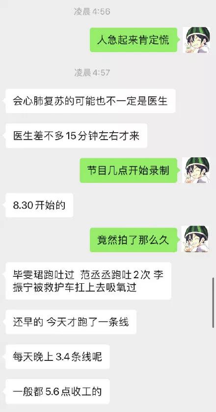 随后,爆料者称医生差不多15分钟左右才来,并且节目是从当晚20点30分开始录制,一直录制到凌晨。