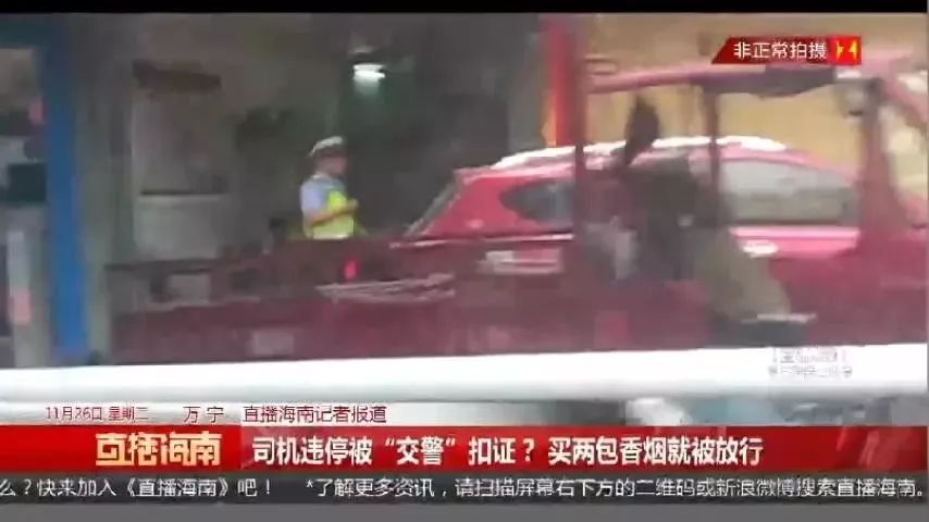 ●万宁一司机违停被“交警”扣证?买两包烟就被放行,公安督察已介入调查& ?1 Y: e' J; B7 z