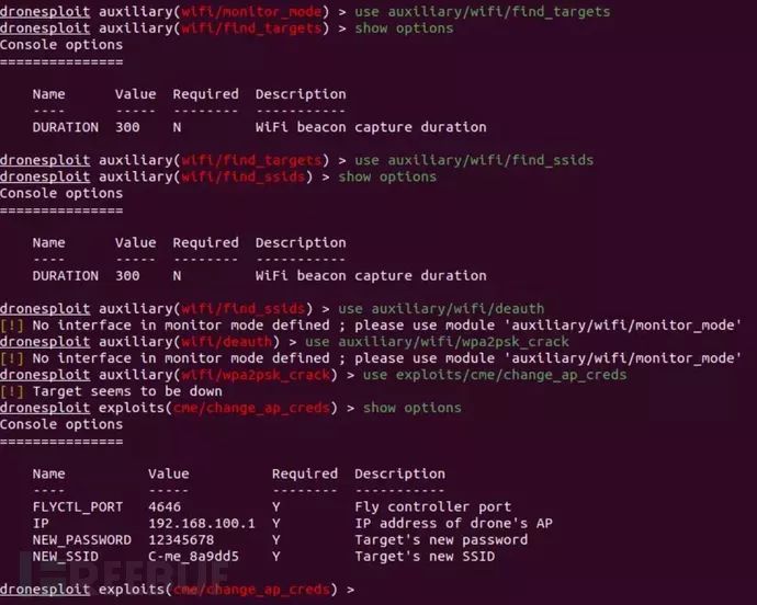 / {$ `8 q! E; z# }8 O[color=#333333 !important]DroneSploit当前支持C-me和Flitt无人机(Hobbico)的模块。其他品牌和型号(包括Parrot和DJI)的新模块正在开发中,并将在不久后添加,大疆厂商要注意啦。