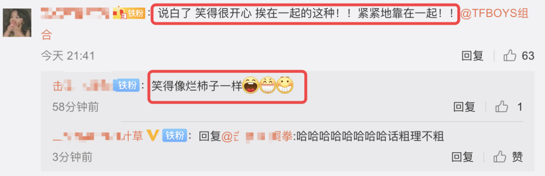 # J! e& K6 w& o* z这张合照一出来,瞬间被粉丝称赞,因为三个人紧紧挨在一起,状态太好了。有粉丝评价,三个人笑得像个烂柿子一样,好甜啊!5 q* Z, P/ J7 ^; k: o