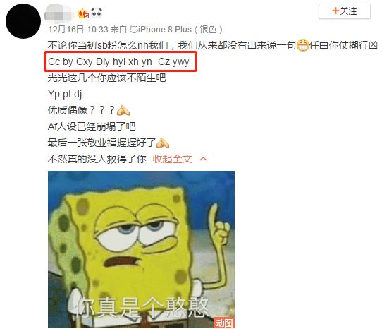 4 l- v1 v+ {1 I$ U) q# E5 O Q这个小号之前给金瀚控评,发生粉丝回踩事件后,还特意强调自己坚决不会回踩。 * V' \' r) j; H4 {' n: ]% M. R
