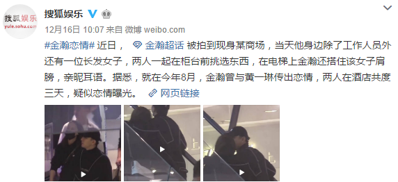 " k4 c; E' r* o* b% s2 {后来媒体爆,金瀚和这位女生吃完饭后,一起在酒店共度了3天,疑似恋情曝光。