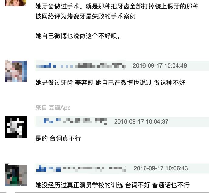 $ l# I/ \/ t- M! v% K' j# l郑爽在《青春斗》里就是标准的口齿不清,嘴里含枣,又快又飘,念台词像赶飞机。同样问题的还有唐嫣,她说话不快,但是南方口音重,很多字都念不标准,比如《归去来》里把成长念成陈长,把丰厚念成分厚。