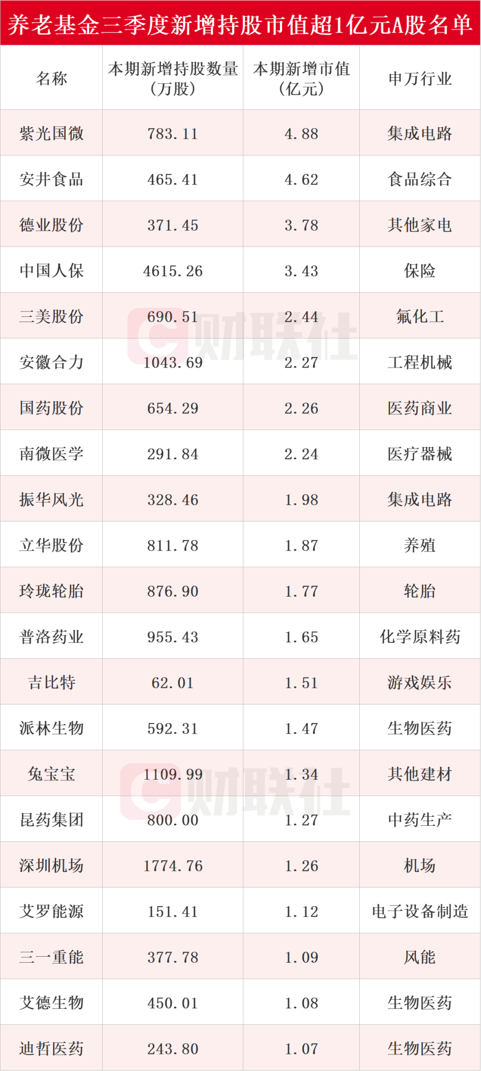 财联社11月2日讯(编辑 笠晨)随着上市公司2024年三季报披露完毕,养老基金最新持股动向也浮出水面。choice数据显示,养老基金新进入51家个股的前十大流通股东名单。 其中,养老基金新增持股市值超1亿元的个股共有21只,分别为紫光国微、安井食品、德业股份、中国人保、三美股份、安徽合力、国药股份、南微医学、振华风光、立华股份、玲珑轮胎、普洛药业、吉比特、派林生物、兔宝宝、昆药集团、深圳机场、艾罗能源、三一重能、艾德生物和迪哲医药。 具体来看,紫光国微三季度末获养老基金新增持股市值达4.88亿元,排在第一位;安井食品获养老基金新增持股市值达4.62亿元,位列第二;德业股份、中国人保获养老基金新增持股市值分别为3.78亿元和3.43亿元。详细情况如下图: 从主营业务是特种集成电路、智能安全芯片的紫光国微披露的三季报来看,基本养老保险基金八零二组合位列前十大流通股东第九席位。紫光国微10月29日发布2024年第三季度报告,前三季度实现营业收入42.63亿元,同比下降24.56%;归属于上市公司股东的净利润10.1亿元,同比下降50.27%。基本每股收益1.1977元。紫光国微10月31日发布投资者关系活动记录表公告,紫光国微高可靠芯片封装测试产线顺利通线,进一步提升了特种集成电路供应链能力与保障水平。此外,紫光国微持续完善以信息安全和功能安全为基础,逐步覆盖周边配套产品的汽车电子业务布局,打造了汽车控制芯片、汽车安全芯片、功率器件等系列汽车芯产品,发布了第二代汽车域控芯片THA6系列高端旗舰级新品。该系列是国内首款获ASIL D产品认证的Arm Cortex-R52+内核车规MCU,在安全性、可靠性、算力、实时性方面,全面对标国际大厂,已导入多家Tier1和主机厂测试。 从主要从事速冻食品研发、生产和销售的安井食品披露的三季报来看,基本养老保险基金八零二组合位列前十大流通股东第八席位。安井食品10月28日发布2024年第三季度报告,前三季度实现营业收入110.77亿元,同比增长7.84%;净利润10.47亿元,同比下降6.65%;基本每股收益3.58元。华鑫证券孙山山等人在10月31日发布的研报中表示,看好安井食品在保证利润的基础上以规模扩张为主线,巩固锁鲜装、丸之尊存量市场的同时,通过属地化研发开拓特通渠道增量,目前前瞻性布局烤肠品类,并及时根据市场趋势调整经营侧重点,维持经营稳定。三季度业绩情况受较多短期因素拖累,但公司主业规模延续提升趋势,目前最困难的阶段已经过去,四季度伴随政府补助延期回补、春节备货提前拉动,预计全年完成收入目标确定性仍强。 从主要产品是以热交换器系列、电路控制系列和环境电器系列为核心的德业股份披露的三季报来看,基本养老保险基金一二零二组合位列前十大流通股东第十席位。德业股份10月29日公告,前三季度公司实现营业收入80.16亿元,同比增加26.72%;净利润22.4亿元,同比增加42.81%;基本每股收益3.64元。第三季度净利润10.04亿元,同比增加229.52%。东吴证券曾朵红等人在10月31日发布的研报中表示,2024Q1-3公司储能逆变器实现营收32.3亿元,总销量40.62万台,同增15%+;主要增量为乌克兰市场。全年预计储能出货50-60万台,同增25%+。阳台微储预计单月出5000台,全年贡献营收3亿元,预计新增量可为25年业绩贡献增速达20%+。 从提供综合金融产品和服务的中国人保披露的三季报来看,基本养老保险基金一五零二二组合位列前十大流通股东第七席位。中国人保10月29日公告,公司前三季度实现营业总收入4695.76亿元,同比增长12.2%;归属于母公司股东的净利润363.31亿元,同比增长77.2%。其中,第三季度实现归属于母公司股东的净利润136.44亿元,同比增幅达2093.6%。华创证券徐康在10月30日发布的研报中表示,中国人保Q3新单恢复增长,人保寿险实现NBV高增。2024Q1-3,人保寿险实现原保费收入966.23亿元,同比+5.9%。其中,长险首年同比-9.0%至414.13亿元,降幅较中期收窄11.4pct。单Q3来看,长险首年同比+122.3%至80.72亿元,预计增速主要来自低基数+预定利率新一轮调整。2024Q1-3,人保寿险实现NBV 同比+113.9%,预计主要来自预定利率新一轮下调带来新业务价值率进一步改善,以及Q3 新单恢复增长驱动。 (财联社 笠晨)来源:https://view.inews.qq.com/k/20241102A04KSK00 免责声明:如果侵犯了您的权益,请联系站长,我们会及时删除侵权内容,谢谢合作! |