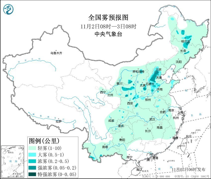 中央气象台11月2日06时继续发布大雾黄色预警。今早,北京依旧大雾弥漫,能见度不佳。北京大雾天气何时结束?雾与霾有何区别?为什么秋冬季节频繁出现大雾天气?我们又该如何应对?一文速览。 大雾黄色预警中,北京大雾天气何时结束? 中央气象台11月2日06时继续发布大雾黄色预警:11月2日早晨至上午,北京、天津、河北中南部、山东西部、山西中南部、陕西中北部、黑龙江南部、吉林中部等地有大雾天气,其中,北京中南部、河北中南部、陕西中北部等地的部分地区有能见度不足500米的浓雾,局地有能见度不足200米的强浓雾。 图/中央气象台 今天早晨京城又是雾气弥漫,其中东南部局地能见度不足50米。受大雾天气影响,截至今早7时20分,北京已有14条高速公路的部分路段采取封闭措施,涉及范围较大,涵盖了京哈、京港澳、京昆、首环等西部、南部、东部地区高速公路。 今早,北京依旧是大雾弥漫,能见度不佳。图/IC 随着气温升高,中午前后能见度有所好转。据@北京交警13时06分消息:目前本市全部高速均已开通运行。 而入夜以后,随着气温下降,凝结水汽增多,雾气再度加重;全市大雾黄色、通州区和大兴区大雾橙色预警中,明天早晨部分地区最低能见度不足200米,东部、南部局地不足50米。 为何这几天北京大雾天气这么重?气象部门表示,综合来看是由多方面因素导致。 11月1日,北京大雾黄色预警继续,市民打开车头灯,小心骑车。图/IC 一方面是北京处于空气污染状态,颗粒物浓度较高是导致能见度下降的原因之一。另一方面是10月31日夜间京城弱降水过程结束后,高空转晴但近地面辐射降温导致相对湿度增大,雾滴就在近地面200米的高度上,非常集中,所以我们就会感到雾比较大。 11月2日16时,北京市发布大风蓝色预警:受冷空气影响,预计3日10时至4日17时北京市有4级左右偏北风,阵风7、8级,4日气温明显下降。 从预报情况来看,冷空气将于11月3日中午抵京,届时风力将逐步增大,能见度也将彻底好转。但需要注意的是,冷空气一来降温显著,气温降幅预计将达到6℃至8℃,最低气温恐将逼近0℃。 图/气象北京 根据预报,预计11月4日至6日,京城的空气质量将持续保持优良水平,适宜大家外出。 是雾还是霾?别再傻傻分不清楚 尽管中央气象台发布大雾黄色预警,但一般人肉眼很难分辨这是雾还是霾。雾与霾究竟有何区别?一起了解。 图/上海疾控 一、主要成因不同 雾是一种自然现象,是悬浮在贴近地面的大气中的大量微细水滴(或冰晶)的可见集合体。霾又称灰霾(烟霞),主要是人为因素造成的,是由空气中的灰尘、硫酸、硝酸、有机碳氢化合物等粒子使大气混浊,视野模糊并导致能见度恶化。 二、能见度范围不同 雾的水平能见度小于1公里,霾的水平能见度小于10公里。 三、相对湿度不同 雾的相对湿度大于90%,霾的相对湿度小于80%,相对湿度介于80%-90%是霾和雾的混合物,但其主要成分是霾。 四、厚度不同 雾的厚度只有几十米至200米左右,霾的厚度可达1-3公里左右。 五、边界特征不同 雾的边界很清晰,过了“雾区”可能就是晴空万里,但是霾与晴空区之间没有明显的边界。 六、颜色不同 雾的颜色是乳白色、青白色,霾则是黄色、橙灰色。 七、日变化不同 雾一般午夜至清晨最易出现;霾的日变化特征不明显,当气团没有大的变化,空气团较稳定时,持续出现时间较长。 八、影响和应对措施不同 雾对交通造成影响,能见度下降,针对雾,主要通过交通提醒、管制等防止发生交通事故等伤害事件发生。而霾主要是由于大气污染引起,对健康和环境影响较大,需要通过减少工业排放、推动清洁能源使用等来改善。 但是,雾和霾相伴而生并能相互转化。雾和霾在一天之中可以变换角色,甚至在同一区域内的不同地方,雾和霾也可能各有侧重。譬如一天中清晨的空气中湿度比较大,水滴含量较多,则出现轻雾和雾的几率就大一些;到了中午空气湿度下降,干气溶胶粒子比重增多,则霾就偏多一些。 雾分几级?为何秋冬季节频现大雾天气? 每年的秋冬季节是大雾出现较多的时段,为什么只有秋冬季节才会频繁出现大雾天气呢?这是因为,白天温度比较高,空气中可容纳较多的水汽。但是到了夜间,温度下降了,空气中能容纳的水汽的能力减少了,因此,一部分水汽会凝结成为雾。特别在秋冬季节,由于夜长,而且出现无云风小的机会较多,地面散热较夏天更迅速,以致使地面温度急剧下降,这样就使得近地面空气中的水汽,容易在后半夜到早晨达到饱和而凝结成小水珠,形成雾。秋冬的清晨气温最低,便是雾最浓的时刻。 图/@中国天气 根据能见度的大小,可分为轻雾、大雾、浓雾、强浓雾和特强浓雾5个等级。 图/@中国天气 根据2014年修订的气象行业标准《雾的预警等级》,大雾预警分三级,分别以黄色、橙色、红色表示,其中红色预警是最高级别。 大雾黄色预警信号 标准:12小时内可能出现能见度小于500米的雾,或者已经出现能见度小于500米、大于等于200米的雾并将持续。 大雾橙色预警信号 标准:6小时内可能出现能见度小于200米的雾,或者已经出现能见度小于200米、大于等于50米的雾并将持续。 大雾红色预警信号 标准:2小时内可能出现能见度小于50米的雾,或者已经出现能见度小于50米的雾并将持续。 大雾来袭,这些事项“雾”必注意 大雾多发季节,浓雾给交通带来诸多不便,同时也会对人体健康造成威
