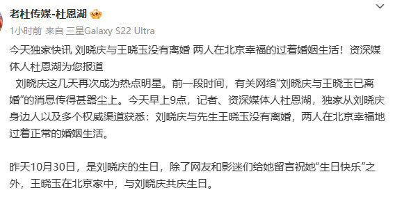 资深演员刘晓庆被曝与小20多岁摄影师交往冲上热搜,她本人保持沉默,著名记者杜恩湖爆料,刘晓庆并没有离婚,还和丈夫一起庆祝74岁生日, 杜恩湖发文表示,从身边人获悉刘晓庆和富商王晓玉没有离婚,两人在北京爱巢过着正常的夫妻生活,刘晓庆生日也是在北京家中度过,王晓玉和友人一同为她庆生。 据悉,刘晓庆有过4段婚姻。 1976年至1982年,小提琴手王立结婚。 1986年至1989年,与演员陈国军结婚。 2003年至2005年,与小10岁的助手阿峰结婚。 2012年,刘晓庆和年长13岁的王晓玉结婚,两人的婚姻持续了12年,今年被曝低调离婚,而且刘晓庆还交了8个男朋友,私生活丰富。 近日有知情人向狗仔爆料,指刘晓庆在2015年出轨一名小20多岁的摄影师,两人暗交数年,后来刘晓庆与男方一刀两断,男方可能心有不甘公开此事,还曝光两人的语言聊天,相当炸裂。这段录音的内容儿童不宜,放在情侣之间的对话里也没什么,但从74岁的刘晓庆口里说出来,一时间令人难以接受。 这位爆料人表示,刘晓庆想尽办法要和小男友分手,男方因此大受打击,甚至患上抑郁症。 男方爆料目的可能是想揭开刘晓庆的真实人格,却出力不讨好,不少网友觉得虽然男方小20多岁,却也是50出头的中年男人,和刘晓庆在一起并不算吃大亏。 10月30日是刘晓庆74岁生日,她分享了一段视频,拒绝回应相关传闻 有网友扒出刘晓庆10月22日在活动上的发言,她说美国人78岁还在选总统,法国人78岁在谈恋爱,“我们”其实现在正是年华。 74岁正是年华很快登上热搜,以刘晓庆的强大心态,相信看到网友的评论后只会一笑置之。 如今记者指刘晓庆并非离婚,与丈夫的感情未受影响,那么爆料人的瓜就有点失真了。 来源:https://view.inews.qq.com/k/20241031A0594H00 免责声明:如果侵犯了您的权益,请联系站长,我们会及时删除侵权内容,谢谢合作! |