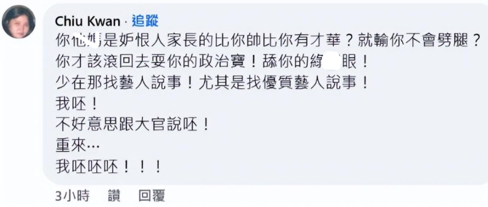 11月4日,有网友爆出曾帮助王菲、那英拓展台湾市场的金牌制作人邱黎宽怒怼台政客的言论,看得人那叫一个神清气爽,太解气了。 在刘德华被一些台政客和喷子针对之际,邱黎宽不惧强权,直接在某个“大官”的社交账号下留言怒怼,不留情面地斥责对方是嫉妒刘德华的才华和帅气,让他滚回去刷他的“政治宝”,别找优质艺人说事,最后还留下了几个“呸”字。 不得不说,邱黎宽的言论足够犀利,态度也相当明确,她就是在力挺刘德华,在她看来,刘德华在台北演唱会上唱《中国人》并无问题。 此前,刘德华时隔11年在台北开个人演唱会,舞台上的他,身穿一袭中国风长袍,唱起了他的代表作《中国人》,台下也有不少台湾观众跟唱。 也就是这首歌,惹怒了部分忘本的台湾网友和政客,他们对刘德华各种吐槽各种指责,有人表示他是故意在“促统”,有人让他赶紧“滚”,还有人则直言他“晚节不保”,甚至还有人表示,刘德华是继成龙之后,第二个不喜欢的港星。 试问,刘德华作为一名中国人,在中国的土地上演唱他的代表作《中国人》有什么问题?很正常的一件事,没想到却直接让那些忘本的台湾人破防,再看到刘德华演唱《中国人》时背后的简体字背景,这些人更是心态崩了。 不得不说,刘德华在台北演唱《中国人》这件事是真的很勇,他就是在提醒某些人不要忘本,不要忘了自己是中国人。而从那些人的反应来看,刘德华演唱《中国人》这首歌也确实让他们破了大防,评论区直接炸锅。 值得一提的是,破防的只是忘本之人,其他台湾人并不觉得有什么,尤其是娱乐圈里众人的态度,前有周杰伦、梁静茹,五月天,萧敬腾,王力宏,林熙蕾等人送花篮祝福,后有邱黎宽这位重量级人物发声力挺。 不仅如此,内地网友对刘德华的做法也是各种称赞,认为他配得上“天王”的称号,三观正且立场一向坚定,是很纯粹很勇敢的爱国艺人,是堂堂正正的中国人。 还有网友则建议,下次谢霆锋可以去唱《黄种人》,王力宏唱《龙的传人》,还可以让张明敏去唱一首《中国心》。 除此之外,人民日报和央视新闻也都先后转发了刘德华在台北演唱《中国人》的画面,央视新闻更是盛赞刘德华演唱的《中国人》是“拉进了亿万中国人的心,凝聚了五千年民族血脉”的一首歌。可以说,不管是官方还是网友,对刘德华此举的评价都极高。 对比台湾那些忘本之人的破防心态,着实是滑稽至极。 更可笑的是,《中国人》这首歌的词曲作者都是台湾人,如今再看邱黎宽的那几个“呸”字着实是形象,是不是讽刺感直接就拉满了? 来源:https://view.inews.qq.com/k/20241104A07BKL00 免责声明:如果侵犯了您的权益,请联系站长,我们会及时删除侵权内容,谢谢合作! |