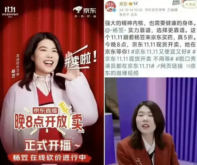 10月14日,京东在双十一前夕的造势活动上,邀请杨笠以及其他脱口秀演员参与——这应该是一次站台活动,而非长期代言,杨笠的头衔是“砍价大使”。当天,京东发布微博信息,号召网友"这个11.11跟着杨笠来京东买药,真5折"。 很快,该活动就遭到了京东部分男性用户发声“抵制”,一些网友以退出京东PLUS会员为威胁。一位微博用户表示,他已经注销了自己的京东账号,并劝说朋友们也这么做;另一位用户,则质疑京东是否“准备为了一个女权主义者而放弃男性市场”。 不过,一开始只是零星声音,而女性用户的参与,则激发了矛盾。不少女性用户在此时也对这一活动表示不理解,认为杨笠不应该为京东代言——理由是,京东创始人刘强东曾在2018年涉嫌性侵女大学生。一位用户说,“给这样的公司做宣传,之前说女性权利的那一套装得可真行啊,媚男的饭好吃吗?” 因而,在舆论前期,部分男女用户在京东本次活动上罕见地“合流”了——都反对杨笠代言京东,只不过,两方的诉求不一致。 但舆论的火苗,开始引燃。 四天后,京东顶不住了。 10月18日下午,京东官微发布了一则公告,与杨笠“切割”。该公告称,“近日,相关脱口秀演员参加京东11.11营销活动受到网友关注,若因此给您带来了不好的体验,我们深表歉意!后续我们没有和相关演员的合作计划……” 公告发布的同时,京东悄然删除了直播活动的杨笠海报,杨笠也删除了自己所发的推广微博。 在京东“割席”杨笠后,事件没有止住,反而愈演愈烈。支持杨笠的女性用户,认为京东是“背刺”行为,而男性用户则更为反弹,形成性别对立的滔天舆论。 这并非杨笠第一次遭到男性消费者的攻击。2021年,英特尔、奔驰和舍得酒业等公司均因发布杨笠参与的广告,遭到部分男性网友抵制。