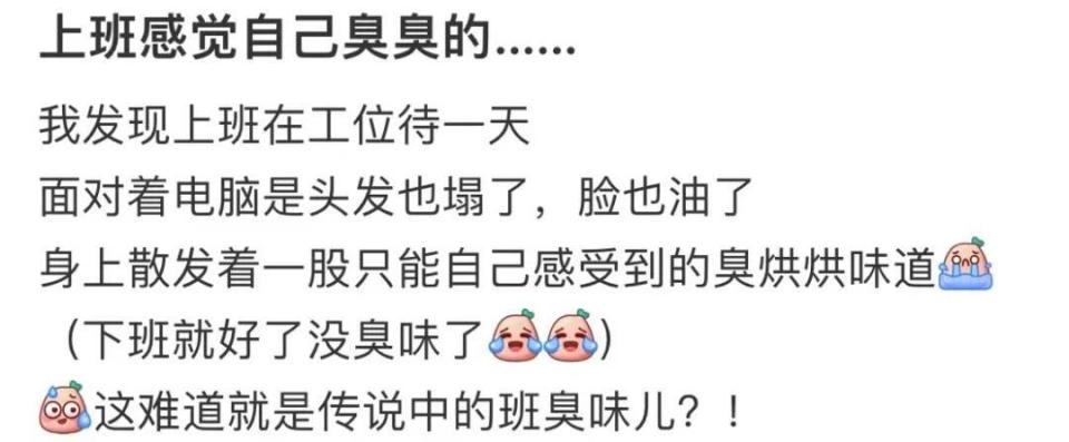 这位国民妹妹的神级颜值,还在无限崩坏中... 前两天,许久未露面的文根英出席《地狱公使2》发布会,当天她一身黑色look,整体还是蛮优雅知性的。 But,肉眼可见姐的身材宽了好多,连带着脸好像也有点垮了,苹果肌掉到嘴角,双下巴也能很清楚地看到。 不少网友都被她现在的样子吓住了,表示姐一出来感觉屏幕都变拥挤了。 也不怪网友震惊,毕竟文根英可是仅凭一张超绝妈生清纯脸全亚洲爆火。 她在《蓝色生死恋》中饰演的小恩熙,一双圆圆的葡萄眼,笑起来特别讨喜。 当年小恩熙追车的神仙落泪,不知道赚了多少观众的眼泪(当然也包括大人。 伴随《蓝色生死恋》爆火,文根英也获封“国民妹妹”title,一路资源飞升。 更是凭借高颜值+好演技,主演了《清潭洞爱丽丝》《名成皇后》《我的小小新娘》等一堆大热剧。 还在《风之画员》里挑战了女扮男装,意外的很有书生气和少年感。 文根英也因此拿到了当年百想艺术大赏的视后和SBS演技大奖,成为韩国史上最年轻的视后。 本来她的前途一片大好,但不出意外的话马上就要出意外了... 2017年,文根英被查出患上了急性骨筋膜室综合症,这是一种难以根治的疾病,严重甚至可能引发截肢风险。 为了治病,她先后进行了四次手术,手臂留下了一条长长的疤痕。 在这之后,文根英就逐渐淡出了大家的视线,直到最近才出来活动。 而伴随着热度而来的还有不断发酵的负面争议,而文根英也迅速进行了回应,称自己的病没有复发,单纯是胖了,最近正在努力减肥。 不管咋说,身体没事就好! 话说回来,这两年身体出问题的明星真的越来越多了...不管是明星还是打工人,上了班之后仿佛都带点小病小痛。 轻则班味缠身,重则月月都要去医院报道。 更离谱的是,上班不仅是最好的医丑,还会让我们由内而外的变臭,也被称为「疲劳臭」。 belike很多人上了一段时间班之后,就发现自己水灵灵的变臭了,浑身上下充斥着头油味、饭味、汗臭味...只有下了班才会自动消失。 不少人都表示,在周围的同事or朋友身上,也曾闻到过扑面而来、直击灵魂的臭味。 形容一下,像是被生化武器突然袭击,san值瞬间狂掉,当事人却往往浑然不觉。 甚至不同的人,即使面对同一种“班臭”,闻到的味道也不一样。 有的人闻到的是厕所味,有的人闻到的是臭鸡蛋味,反正不管怎么都是滂臭的味道。 啊这,有臭味就算了,这味道咋还不一样呢? so,这种臭味是真的能闻到吗?到底是不是上班上出来的?又该咋判断自己身上有没有味啊? 有一种臭,叫班臭... 人体的汗腺分为小汗腺和大汗腺,小汗腺遍布全身,主要功能是调节体温,通过分泌汗液来帮助身体散热。 而汗液主要是水分和少量的盐分,所以一般没有味道。 大汗腺则主要分布在腋下、手脚、生殖器周围,其分泌物除了水分外,还包含蛋白质、脂肪酸等。 这些物质在皮肤表面被细菌分解后,会产生刺鼻的气味,也就是我们常说的汗臭味。 所以,大汗腺才体味的“万恶之源”... 就像公司一样,为了方便管理,每个员工都隶属于不同的部门,也有不同的领导,为了更方便管理,大小汗腺也由不同的神经控制。 小汗腺主要受乙酰胆碱分管,大汗腺则交给去甲肾上腺素支配。 随着我们被发配到公共慎刑司(简称公司,人长时间在高压的环境下冷脸洗内裤,大脑也会产生应激反应。 这个时候,下丘脑就会对肾上腺发出指令,令其释放出去甲肾上腺素。 从而令大汗腺开始分泌汗液,导致手、脚、腋下冒汗骤然增多,班臭味也会随之产生。 而压力除了让人出汗变多之外,还会导致我们的汗液比平时更黏稠。 臭味也更大、更强、更冲... 早前日本曾有一项研究,以40名35~44岁的健康女性为样本,来探究压力与人体皮肤汗液气味的关系。 受试者需要将手部置于被氮气填充的密封袋中,然后经历了两次截然不同的测试。 一次是进行20分钟的压力面试,另一次则是坐在椅子上放松的看杂志。 研究人员专门邀请了四位气味专家,分别记录了压力和休息时手机的皮肤气味特征。 结果表明,受试者在压力诱导下,会释放出特殊臭味,随着精神紧张程度的升高,这种气味的强度也随之增加。 so,压力把打工人腌入味这句话,并不是一句形容词。 而是确确实实会发生的真实情况... 班臭到底是个什么味啊?! 话说回来,现在我们知道上班确有其臭,但具体是个什么味,还真是各说各话、众说纷纭... 事实上,班臭从不指代某一种味道,而是多种气味的大杂烩。 N重气味,一触即发 上班的时候,总觉得时间太长,分秒难熬,下班却往往一溜烟就过去了。 于是大部分姐妹只得无限压缩睡眠,来挣得一些独属于自己自由的时间。 但...熬夜带来的并不只是精神力的不足,还有挥之不去的口臭味。 当人体缺少睡眠,唾液分泌就会减少,细菌(尤其是厌氧菌)缺少了天敌的制衡,就会在口腔内大量繁殖,产生酸臭味。 而且熬夜也会影响肠道菌群的正常工作,从而令胃肠功能更易受损,进一步加大了口臭的威力。 一张嘴就把人送走的社交核弹,威力属实是有点太超过了... 精神压力过大带来给我们带来的另一个负面影响,就是过度疲劳。 此时,人体内的皮质醇和雄激素水平激增,会刺激皮脂腺活跃起来,导致油脂分泌量增加。 而皮脂腺主要集中分布在脸上、头上,这些部位本身便很容易附着各种细菌和微生物。 一旦油脂分泌过剩,微生物获得了有利的生存条件,就会更加肆无忌惮的驻扎、