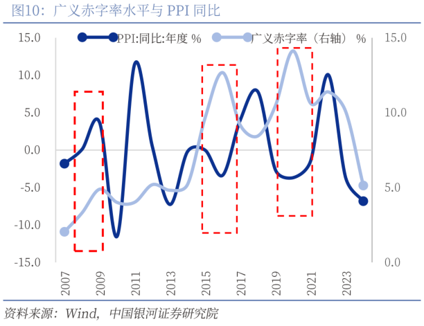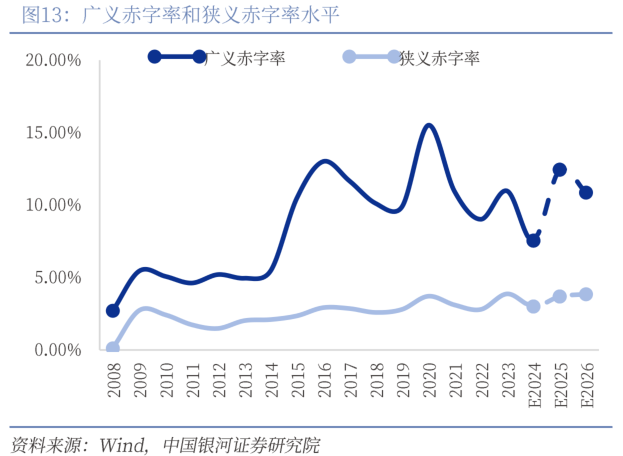 七、哪些工具计入赤字率?哪些不计入? 比较易于区分的是新增普通国债和地方政府一般债务限额计入政府狭义赤字率,以上债务计入财政一般公共预算管理,也就是纳入财政“一本账”,而地方政府新增地方专项债、中央特别国债和未来持续发行的超长期特别国债不计入狭义赤字率统计范围内,纳入“二本账”管理。但需要注意的是,对于上述存量债务限额的盘活使用并不计入当年赤字率。而去年年底新增的万亿国债,是参照特别国债管理,但实际应计入赤字率。所谓参照特别国债管理,即是具有明确的资金用途,例如去年新增万亿国债主要用于灾后重建、防涝防洪等8个主要方向。 此外,所谓赤字率的概念是新增债务规模与名义GDP规模的比值,其还受到物价水平的影响。例如去年目标赤字规模为4.06万亿,其对应的名义GDP规模为135.3万亿元,其中隐含对今年物价水平GDP平减指数为2.36%。 目前来看,债务是否计入赤字率,以及实际赤字率的高低已经并不十分重要,其更多是体现出的是对政府举债用途的分类,例如用于经常性支出的债务理应计入赤字率,而用于项目建设且具有投资收益的资本性支出可以纳入政府性基金预算管理,这也是国际通行做法。目前来看,伴随新型城镇化建设,以及生育和养老对公共基础设施和公共服务的需求提升,未来仍有较大的投资需求。在这方面,纳入政府性基金管理的超长期特别国债或将能够发挥更多的作用,我们也注意到2025年新修订的《财政收支科目分类》里,其中在政府性基金支出下新增了教育、医疗、保障房支出科目,下设款项为“超长期特别国债安排的支出”。这或是一个重要转变。 八、广义财政赤字率怎么看? 相较于预算赤字率而言,真正决定财政对经济拉动作用的指标实际是广义财政赤字率,即考虑到所有政府债务及准财政政策工具后的总体财政支持力度。从历史数据来看,广义赤字率与PPI水平和外需出口增速负相关。广义赤字率既决定国内总需求水平,也受外需影响。往往外需承压的时期,便是广义赤字率抬升的时期,例如2008年的金融危机、2015年的中美贸易战时期、以及疫情期间,均是内需大幅扩张时期。而目前来看,美国大选特朗普支持率显著回升,共和党“全胜”概率提升,未来面临关税政策和全球需求走弱的情景,明年外需压力或逐渐加大。内需政策发力的必要性进一步提升。 2024年广义赤字率大幅降低,内需相对疲弱。今年实际预算内赤字率较去年并未有大幅降低,如果将超长期特别国债考虑在内,计入中央和地方政府表内的新增债务规模为8.96万亿元,高于去年8.76万亿元。但如果将其他准财政工具(PSL、狭义城投债、政策性金融资、铁道债、汇金债等净融资规模)考虑在内,广义赤字率水平实际上较去年大幅降低,我们测算2023年广义赤字率约为11%,而2024年预计仅为7.5%。其中作为基础货币投放方式之一的PSL净偿还了6681亿元,作为地方投资重要配资来源的城投债净偿还了1.01万亿元。 2025年广义赤字率有望大幅回升,带动经济和物价水平温和回升。因此,考虑明年财政对经济的拉动作用,不能仅盯着新增政府债券规模,还需考虑明年广义赤字率水平能否大幅回升。我们认为前期财政部发布会上提出“逆周期调节绝不仅仅是以上的四点,这四点是目前已经进入决策程序的政策,我们还有其他政策工具也正在研究中”。其他政策工具除了进一步加码的中央赤字(超长期特别国债)外,或许还有广义财政工具的加码。例如PSL等政策工具的降息重启。我们预计明年超长期特别国债发行规模或在2万亿左右,6万亿化债额度或主要集中在明年发行,规模或在3万亿左右,专项债额度考虑到增加了土地和商品房收购,发行规模或提升至4.2万亿元,PSL或其他政策性金融工具用于配合新增100万套改造房建设的额度有望提升至8000亿左右。考虑到以上主要工具,我们测算出明年广义赤字率或能提升至12.5%,以此便能有效拉动经济和物价水平的企稳回升。 来源:https://view.inews.qq.com/k/20241102A06LTI00 免责声明:如果侵犯了您的权益,请联系站长,我们会及时删除侵权内容,谢谢合作! |