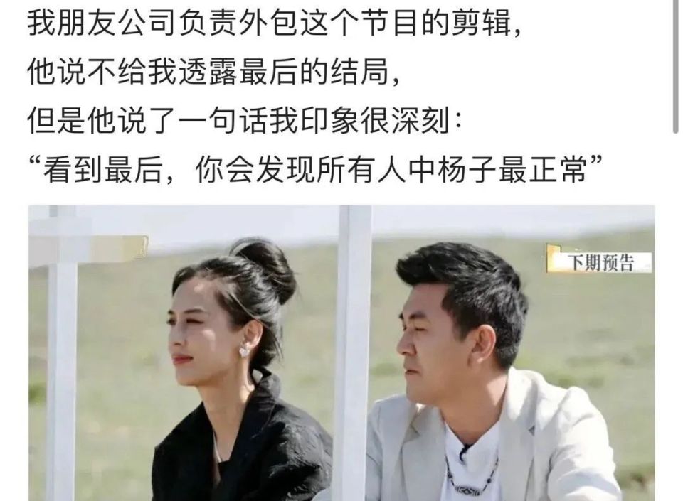 再见爱人4:黄圣依杨子只是利益共同体?李行亮麦琳:母子式的窒息? 作者 | 花花 编辑 | 先声编辑部 这年头,明星没点“病”恐怕上不了综艺节目,观众不懂点心理学也快看不懂综艺节目了。 《再见爱人》第四季刚开播的时候,有疑似认识节目组后期工作人员的网友爆料称,“看到最后,你会发现所有人中杨子最正常。” 一开始,杨子随意大小爹的形象已经超乎观众的想像。没想到几期节目过后,杨子是不是最正常得不好判断,但《再见爱人4》全员“有病”倒是真的。 杨子、麦琳、刘爽被网友戏称“恶人三巨头”,据人均心理学家的短视频博主逐帧分析,杨子是显性NPD(自恋型人格障碍),麦琳是隐性NPD+BPD(边缘型人格障碍),刘爽是回避+善用PUA型。 此前,“花学”的周雨彤、炖豆角的黄磊、吃豆角的宋丹丹也都被分析出是NPD+PUA高手。 最早《爸爸去哪儿》这类亲子节目里还是关于原生家庭的大概念讨论,如今已经细化到NPD、BPD这样的小范畴领域,综艺节目里的心理学分析越发细致、专业。 在强情绪的传播下,有人在看乐子,有人在照镜子。虽然社交网络上话题不断,网友也讨论得风风火火,但节目本身的重点却逐渐模糊。 01 爹味、妈味、儿味 杨子、麦琳、刘爽在节目里彻夜长谈时,不少网友表示:你们三个把日子过好比什么都强。 杨子的爹味、麦琳的妈味、刘爽的儿味,编剧都写不出来的人设,在《再见爱人4》里算是集齐了。 杨子的爹味是毫不掩饰的。 他在节目中的战绩,包括当着节目组的面偷藏手机;大半夜让黄圣依吃油炸方便面,并要求好评;摄影师说了句他不想听的,他马上问:“你姓什么?”;来上节目,讽刺黄圣依在节目中的诉求表达是“过年了”;大言不惭地说自己比黄圣依的热度高…… 不仅爹味毋庸置疑,杨子的逻辑更是无懈可击。 他会合理化自己得一切行为,即使漏洞百出,也能侃侃而谈,顺便上一波价值。靠哥哥上桌怎么了,蹭老婆流量又怎么了,在他的逻辑闭环里,他可是唯一的王。 再厉害的懂王也怕遇见逆子,刘爽作为叛逆好大儿,怼起好大爹不留情面,给差点被杨子气死的观众出了一口“恶气”。 刘爽面对其他人时看着正常,但面对自己老婆葛夕就成了巨婴。 他会PUA葛夕说她不如自己前女友;生活中一点家务都不干;丈母娘生病毫不关心;拿着老婆的钱投资,失败后选择欺骗;毛病一堆,但既不想改变也不想离婚。 相比于杨子和刘爽“渣”得明明白白,麦琳人设有些复杂。她不是坏人,但却是压迫感最强的一个,像是一个没苦硬吃的老母亲。 她张口:“我为你付出了太多”,闭口:“我不求回报”,一次次用自己的“低微”来打压对方,并证明自身的价值。 明明掌握家里经济大权,却舍不得花钱,还要抱怨李行亮没给她花钱。李行亮给她送礼物永远送不到她的心趴上,问她喜欢什么又不说,送了又不满意,处于恶性循环。 最新一期节目里她又贡献金句,问李行亮:“我配拥有一杯咖啡吗?” 李行亮说房间里有,她马上不高兴,其实她是想让李行亮去店里买一杯。这次连黄圣依都有些无语,问她为什么不直接说,她则又搬出了那套猜来猜去的理论。 观众无语的同时也纷纷共情,看见这些嘉宾时好像看到自己身边控制欲极强的人,吐槽起来更加有理有据,有了不少专业名词作为 “学术论证”。 心理学作为复杂的学科,在综艺节目如今变得异常接地气,观众对于“综艺心理学”的讨论热情也空前高涨。 02 从原生家庭到NPD, 心理学热词的升级 其实,早在亲子综艺热播的时候,综艺心理学就很有热度,还带火了一个热词:原生家庭。 萌娃之间的不同性格和反差,让网友们产生了代入感,也让大家越发相信,父母的陪伴、教育等原生家庭的因素,会对一个人的成长产生很大影响。即使很多年过去,《爸爸去哪儿》里李湘、王岳伦的教育方法还被网友津津乐道,而黄多多每上一次热搜,黄磊的教育理念也会被拿出来讨论一番。 就算已经长成大人的年纪,但只要跟父母一起,还是会被讨论原生家庭。《旋风孝子》里郑爽和陈乔恩依然还无法摆脱父母带来的影响,原生家庭也成了一场“流行病”。 接着恋综崛起,观众在探讨两性关系的同时不可避免带出一个新词:PUA。 PUA多指在一段关系中一方通过言语打压、行为否定的方式对另一方进行情感操纵和精神控制。 比如《再见爱人2》里张婉婷多次对宋宁峰进行精神打压,她挂在嘴边的是:“你真有福气找了我当老婆,要说还是你命好,奈何我找了你这么一个拖油瓶”等言论,成了PUA的典范。 之后,PUA的概念不再局限于两性关系,诸如职场等环境也被大肆探讨。最著名的当属“坞学”,《五十公里桃花坞》里的“尴尬九分钟”至今还能被网友逐帧分析。 事件主角宋丹丹从德艺双馨的艺术家变成了PUA小辈的中国式大家长,“受害者”李雪琴和汪苏泷也变成了被压榨的“打工人”,勇于反抗的王传君则成了整顿职场“孤勇者” 。 最近,综艺心理学的热词则变成了NPD。这类人往往极度以自我中心,缺乏同情心,控制欲很强,需要他人地赞美和崇拜来维持自我价值感。 先是周雨彤在花少里路人缘尽失,成了NPD的代表。无数网友下场总结NPD的人格特征,精华就俩字:快跑;接着杨子的出现,让NPD有了更加具象化的表达,自恋、自大、自我,这个词仿佛为他量身定做。 至于麦琳,不仅是隐性NPD,更被分析出是BPD。情绪易爆发,在亲密关系中矛盾、纠结,他们的伴侣