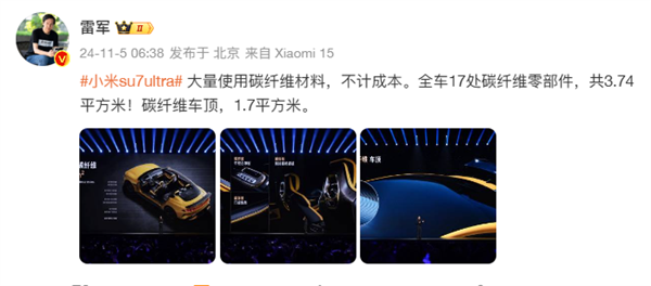 快科技11月5日消息,雷军今天一大早就发文提到小米SU7 Ultra,称该车大量使用碳纤维材料,不计成本。 全车17处碳纤维零部件,共3.74平方米,碳纤维车顶达到1.7平方米,按照发布会上的说法,这个车顶就可以足足减重12KG。 此外,还有碳纤维后视镜、碳纤维方向盘、碳纤维门板饰条、碳纤维中控台面板、碳纤维座椅背板、碳纤维固定大尾翼等。 这个大尾翼可以让下方的空气流速比上方的快,从而下方的气压比上方的低。 这种压力差产生了垂直于尾翼的下压力,大尾翼是下压力与操控稳定性的重要贡献者。 小米SU7 Ultra的尾翼翼面采用全碳纤维材质,翼展达到1560mm,弦长达到240mm,是法规范围内最大的尾翼之一,不仅让整车更“战斗”,还能在高速行驶时带来可观的下压力。 官方介绍,小米SU7 Ultra量产版的下压力为285kg,是目前200-300万元级别量产车超级跑车的水平。 来源:https://view.inews.qq.com/k/20241105A00Q1900 免责声明:如果侵犯了您的权益,请联系站长,我们会及时删除侵权内容,谢谢合作! |