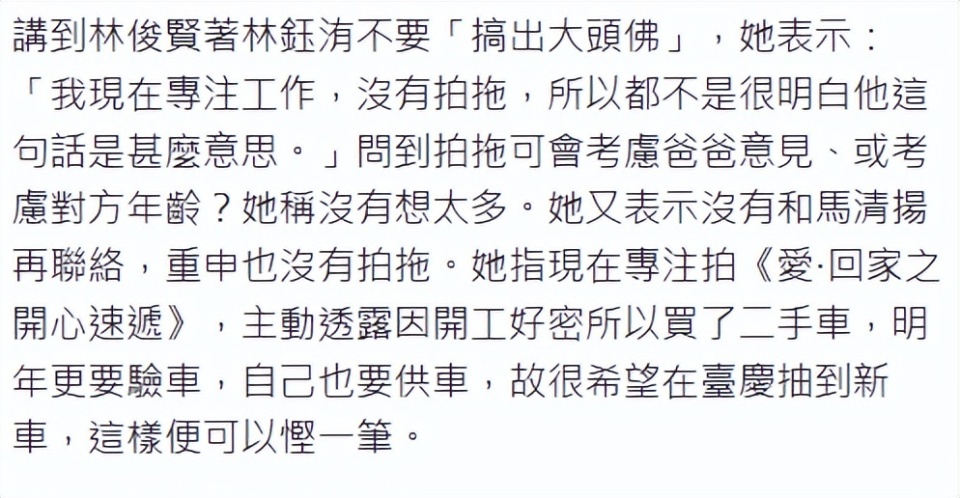 64岁港星林俊贤最近闹出个大乌龙,29岁女儿林钰洧被曝爱上61岁富商马清扬,林俊贤公开表示很介意,让女儿别搞出个“大头佛”。 11月4日,林钰洧在香港出席活动,她在被问到如何看待父亲对恋情的发言时突然表示没有拍拖,认为是父亲太久没看香港新闻,她早就澄清没有恋情。 据悉,林钰洧今年年初被曝在富商马清扬的家中过夜,相差32岁的恋情随之曝光,当时马清扬承认正在追求女方,坦言林钰洧是一个很单纯的女孩。 与此同时,正在和马清扬办理离婚手续的太太钱慧仪也发声,谴责马清扬带女孩子回家,让子女在外面抬不起头。 此消息很快传到林俊贤的耳中,他在10月底回港出席活动坦言介意男方的年龄,但如果男方保养得好或许身材好,又要另眼看待,又说已跟女儿表态,让她别搞出个“大头佛”(麻烦)。 没想到,林钰洧时隔数日澄清并没有和富商交往,而且矛头直指父亲林俊贤。 林钰洧表示很久没和父亲联系,只有生日那天才会送祝福,看到新闻才知道父亲回港,但父女并没有见过面。当听到“不要搞出大头佛”时,林钰洧马上强调自己专注工作没拍拖,不明白父亲的这句话是什么意思,现在她是单身,为了专心工作贷款买了二手车。 值得一提的是,林钰洧当天前往马清扬的豪宅,是开了一辆数十万的轿车,港媒当时就表示林钰洧在TVB的薪水不高,突然买得起轿车,或许与富商有关。 林钰洧如今解释,轿车是自己贷款买的,与富商无关。 据悉,61岁的马清扬是香港富二代,其父亲创立大生银行坐拥10亿资产,马清扬和港姐钱慧仪结婚二十多年,2018年被曝出轨后感情破裂,钱慧仪迟迟不肯离婚,一个月有48万港币的生活费却仍不满足。 马清扬今年被曝出新恋情后,两人离婚进展又遇到难题,女方要求他支付700万的诉讼费,马清扬一度拖延被法官批评,后来迫于压力只能乖乖交钱,但两人的官司还没完。 查看详情:https://view.inews.qq.com/k/20241105A011Q100 免责声明:如果侵犯了您的权益,请联系站长,我们会及时删除侵权内容,谢谢合作! |