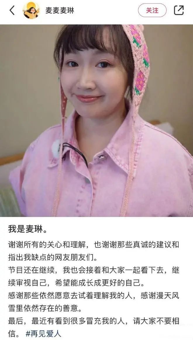 不知道大家有没有注意到一个细节。 《再见爱人4》的主题曲,是由李行亮作词、作曲和演唱的。 这首歌的名字叫《山海有规则》,歌词暖心又扎心,旋律悠扬又激昂。 像极了李行亮和麦琳之间,彼此深爱又互相伤害的婚姻现状。 其实,早在第一期节目播出的时候,我就注意到了这首歌。 为了听懂其中蕴含的复杂情绪,单曲循环了好多遍。 当时节目还不像现在这么火,注意到这首歌的人并不多。 刚出场的麦琳给观众留下的印象,还是勤俭持家、贤妻良母,但又极度委屈和缺爱。 我跟许多观众对她的第一印象大致相同。 甚至觉得,凭借一己之力帮助李行亮改变命运的她,配享太庙。 如今我对麦琳的好感,几乎消耗殆尽。 节目中她大肆抱怨,李行亮专门从北京坐飞机去上海,买她爱吃的青团,还买了所有口味。 结果她第一口没有吃到喜欢的馅料,所以非常生气。 当其他嘉宾对她的行为提出建议,让她不要再打压李行亮的积极性时,她还数次大笑着说,自己经常这样做。 听完这个故事,再看到麦琳对此事的态度,我的白眼当时都快翻到天上了。 更让愤怒的是,在张泉灵紧锣密鼓地追问下。 麦琳又表达出了,自己当下最想要的礼物,其实是包包。 可能害怕别人误会,她又赶紧补了一句,其实自己并不是真的想要,只是这个礼物当下会让自己更有面子。 她这句话一出口,我的怒火一下子就上来了,差点没气晕过去。 当时的第一感觉就是,怪不得李行亮送的腰垫、身体乳、衣服和手机,都没有送到她的“心趴”上,原来答案在这等着呢。 借用网友的话说,她这副架势,就是想让李行亮跪着给她呈上顶级款的限量名包。 实在搞不懂,前两期那么勤俭持家的麦琳,怎么变得这么“事儿精”和“物质”? 幸好在张泉灵循序渐进的引导下,之前还用大笑掩饰错误,不断回避矛盾的麦琳,终于平静下来,承认了自己的错误。 甚至于,谈论的最后,她还非常坦诚地说了一句:其实我很希望听到这些,因为人很多时候,最可怕的是不自知。 耐心地看完这段对话以后,我对麦琳的怒气荡然无存。 而且还恍然大悟,非常明确感知到了她在节目中,越来越让人讨厌的原因。 因为在张泉灵的衬托下,黄圣依和葛夕在节目中对待麦琳的态势,简直可以称得上是“极其恶劣”。 而麦琳在节目中的表现会越来越差,很有可能就是因为,她感受到了这些恶意,甚至是暗戳戳的孤立。 所以才想拼命用各种自相矛盾的行为,来证明自己拥有的,其实远比另外两个看似比她厉害的女嘉宾更多。 展开分析之前,先声明两点。 其一,这只是我的大胆猜测,或许不对,但绝非毫无根据的臆想,而是观察过后做出的推断。 其二,我愿意相信黄圣依和葛夕并非出自恶意,或许因为出身和价值观跟麦琳过于不同,她们之间才不可避免地产生了隔阂。 毕竟,黄圣依可是一个连自己孩子几岁都记不住的母亲。 更是一个在结婚之后,连何为尊重都全然不知的豪门阔太。 而葛夕,据说也是一个有着300万嫁妆、600万房款的富家女孩。 她精神世界丰盈,情感内核稳定,完全不会被婚姻家庭捆绑。 唯有麦琳,出身一般,还完全放弃了自己,一股脑地扑在老公和孩子身上。 境况如此不同的人待在一起,存在分歧也在所难免。 在此基础上,我们再来分析,这三位女嘉宾之间的微妙关系。 看看黄圣依和葛夕是如何在不经意间孤立麦琳,进而给她带来伤害的。 先说我是如何发现的。 在张泉灵采访三位女嘉宾的那段场景中,我可以非常明显地感知到,黄圣依和葛夕似乎有些肉眼可见地看不上麦琳。 当张泉灵和麦琳交流时,坐在中间的黄圣依和葛夕,并没有认真去听。 她们不仅会疯狂吃东西,还会紧靠在一起窃窃私语,偶尔听到麦琳的一些讲述,她们还会流露出有些鄙夷的神情。 因为她们两个的小动作实在太多,很多时候,张泉灵和麦琳需要侧着身子,才能在保证看到对方的情况下进行谈话。 到了最后,可能连后期的剪辑都看不下去了,只好把她们两个的画面删除,强行把张泉灵和麦琳拼接在一起。 而且,我清楚地记得,黄圣依和葛夕在这次谈话中对麦琳做出的回应。 葛夕说麦琳很“作”,黄圣依说麦琳自己都不是个浪漫的人,还要求李行亮做浪漫的事。 麦琳并没有做出反驳,笑着认领了这些评价。 表面上看,葛夕和黄圣依就像观众的嘴替一样,当场帮助观众表达了对麦琳的不满,麦琳也承认了错误。 但相比于张泉灵饱含善意的循循善诱,还有发自肺腑给出的一些建议,葛夕和黄圣依的评价,其实更像情绪化的表达。 她们只会揪出麦琳的缺点,然后大肆指责和评价,但从来不提建议。 麦琳在她们无比正确的“批评”声中,只能用大笑来掩饰尴尬。 但说实话,这种揭了伤疤不给纱布,还要往上面再撒一把盐的做法,其实完全无益于麦琳改善自己的问题。 其实,这并不是黄圣依和葛夕第一次在节目中,以胜利者的姿势,去否定麦琳了。 黄圣依曾不止一次地说过,我和麦琳不一样,我不是家庭主妇,我有自己的工作。 另外,还有一个非常明显的场景是,麦琳在热情洋溢地跳舞,却发现大家都在为黄圣依鼓掌。 然后,她赶紧尴尬地退了出来。 之后,她又在饭桌上生气地质问李行亮,为什么不及时拉她下来,让她公然出丑。 李行亮表示自己非常无辜,因为觉得她跳得很美,没有必要跟别人比较。 这里,李行亮的反应并没有什么错误,情人眼里出西施,他完全有理由觉得,麦琳很美,只要她跳的开心就好