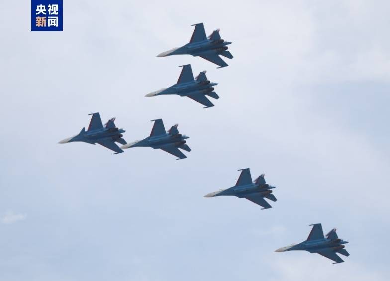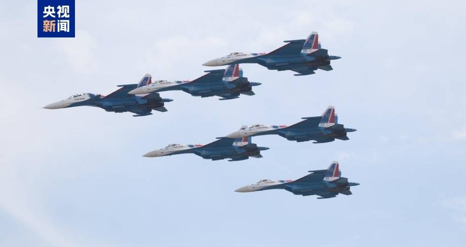 今天中午,全新换装苏-35S重型战斗机的俄罗斯“勇士”飞行表演队以6机编队的形式参加来到珠海后的首次适应性训练。