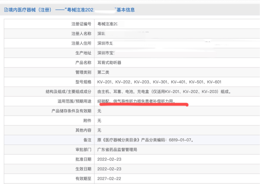 ▲新京报记者调查发现,电商平台至少有四家品牌都有一款主打“智能降噪”“无需调试”的型号为“601”的耳背式助听器,其型号、产品外观均相同,它们的医疗器械注册号也相同。图源:网络截图 ━━━━━ 贴牌、营销、无需验配 电商平台上,新京报记者还发现,不少在售助听器所属的品牌公司,与产品页面展示的医疗器械注册证的持有者,并非同一个。 王冬鹤表示,部分品牌选择贴牌是因为医疗器械门槛很高,如果某品牌此前没有做过这个品类,仅仅拿到医疗器械注册许可证都需要花费多年时间,前期需要投入的费用很高。 在他看来,贴牌就意味着对品质、功能的控制都有限。首先是难以保证每个产品都符合高标准,生产过程中缺乏严格的质量控制;其次贴牌产品的技术和工艺较为落后,缺乏创新,无法参与芯片底层设计、编程软件和听力学相关设计等。 陕西恒达律师事务所高级合伙人赵良善律师指出,医疗器械注册证是医疗器械生产的法定凭证,也是厂家合法生产的保障,不得伪造、变造、出租、出售或授权他人使用。品牌方将其委托生产的产品作为自身品牌进行销售推广,不同品牌代表不同的服务、产品质量、信誉、市场依赖等。如果多个品牌使用同一厂家的产品,容易导致品牌之间无明显差异,造成消费者误导,可能会构成不正当竞争或侵犯消费者权益,产品混同和品牌混淆,也会扰乱市场经营。 赵良善介绍,之所以出现这类操作,一方面,成本低,很多企业通过委托关系,利用他人资质,提高自身利润;另一方面,法律规定虽要求产品生产需要注册证,但并未要求生产和销售具有唯一性,或者生产企业和品牌必须一一对应,这样就造成很多企业利用法律漏洞谋取利益。加之,行业现象普遍,监管可能存在一些难度,导致较多企业违规。 在这种情况下,网络上销售的低价助听器,大部分是靠营销推动的,郗昕直言。 新京报记者调查发现,某品牌店铺中,一款声称是“16通道助听器”的产品,但在其生产厂家工作人员发送的产品资料中却为“8通道数字耳内式助听器”的型号。 该工作人员表示,数字机可以对通道数进行宣传,而模拟机价格便宜,厂家不会对价格过多干扰,一般都会定价在二到三倍。对方还表示,可根据要求重新设计包装,只需选择一个型号,包装、颜色、LOGO都可以更改。 新京报记者发现,不少网络商家为求销量,在售卖助听器的过程中多有误导。比如一些助听器在产品详情页声称自己含有各种“高科技”设计,比如“半导体技术”“16通道数字芯片”等。 郗昕提到,大多数消费者没有鉴别能力,只能从使用感受上判断,戴上不舒服,时间久了就不戴了。这样势必会让消费者获得不佳的助听体验,甚至导致消费者对整个助听器产业失去信心。 “即买即戴”“无需验配”也是网售助听器主打的一大卖点。 在查询了这十款产品的医疗器械注册证后,新京报记者发现,其中有五款助听器在其医疗器械注册证的“适用范围/预期用途”一项明确写道“经验配,供气导性听力损失患者补偿听力用”。 韩朝直言,没有验配的助听器就相当于是个摆设,就像配眼镜需要验光,助听器也需要调试到戴上舒服为止。 助听器的验配有专业的流程。韩朝介绍,佩戴者首先要进行听力测试,验配师根据测试生成的听力曲线,记录评估各频段的听力损失分贝数,据此选择不同频率的助听器,然后再在安静环境下调整不同频率的参数,适应后再去嘈杂的环境中试用,再次微调后才能达到最佳的使用效果。